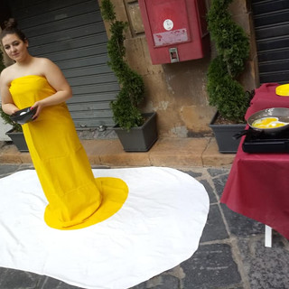 La scena è costruita nei minimi dettagli. L’artista ha imbandito il palcoscenico dove l’azione prende forma, lasciando una certa autonomia di azione. Una video installazione struttura tutto il percorso. Lo spettatore diventa attore-performer di un gioco di azioni dove tutti i sensi interagiscono, e nello stesso tempo di una ricerca scandita da alcune regole che diventano rituali da ripetere da condividere. Gesti semplici. Il primo contatto fisico con le uova (Resurrection). Il successivo mutamento (Passion) dove l’uovo viene rotto. L’elemento esterno il fuoco (Purification) che trasforma l’azione in una conseguenza (Sacrifice). L’ultimo tassello (Eucharist) dove si compie la fusione perfetta dell’idea dell’artista con il concetto immaginato che diviene visibile, tangibile. Tutto diventa perfetta armonia, amalgama, unione di esperienze. Tutto si modella per generare un nuovo cambiamento. Tutto diventa funzione di un rituale antico: quella condivisione del cibo intesa anche come offerta e rispetto della vita stessa.